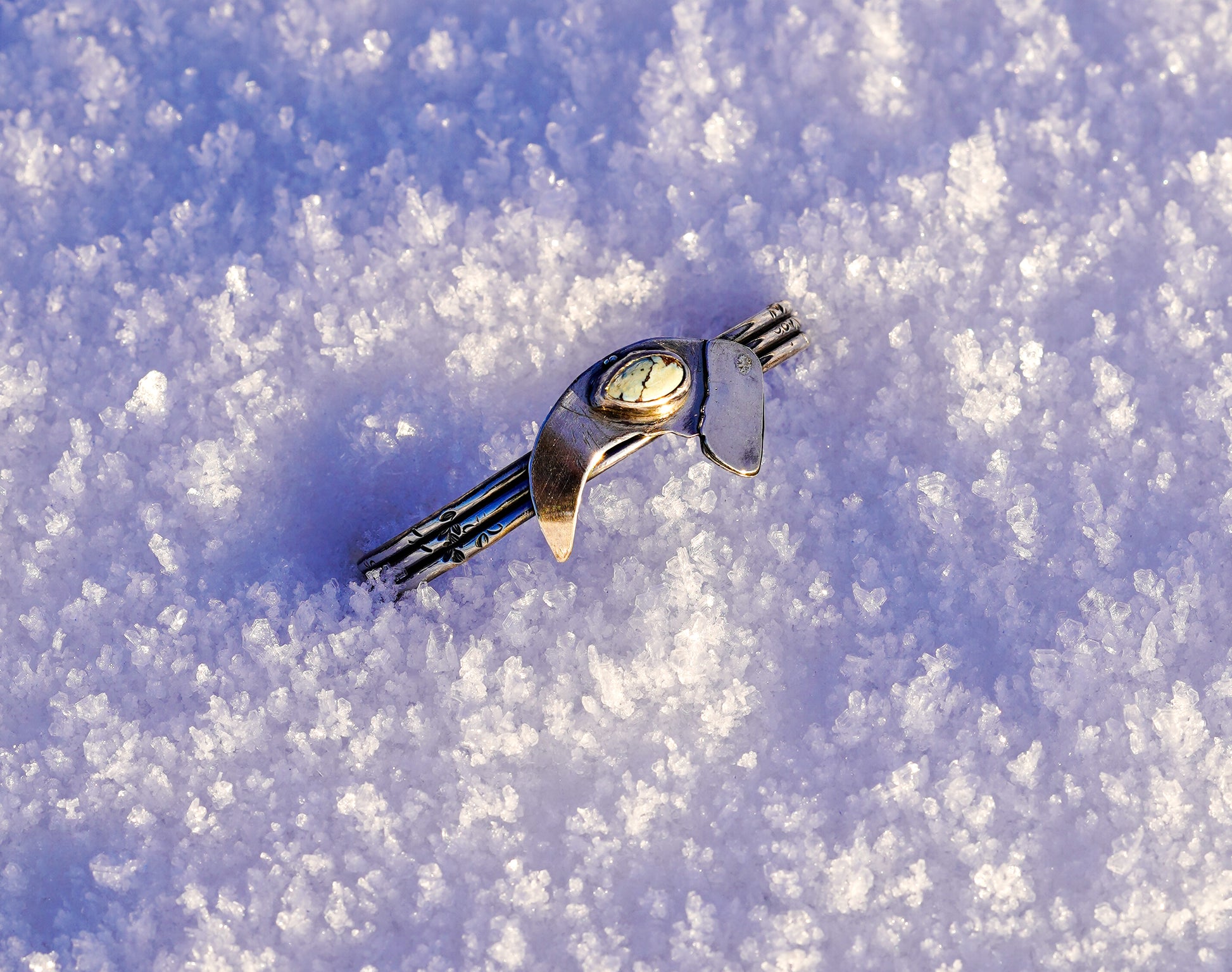 Alaskan made, with turquoise inlay, the bear claw bracelet is adjustable by gently squeezing the bracelet to fit your wrist.